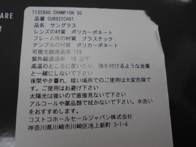 | コストコアウトレットのチャンピオンのサングラス、6層構造で紫外線をカットします |